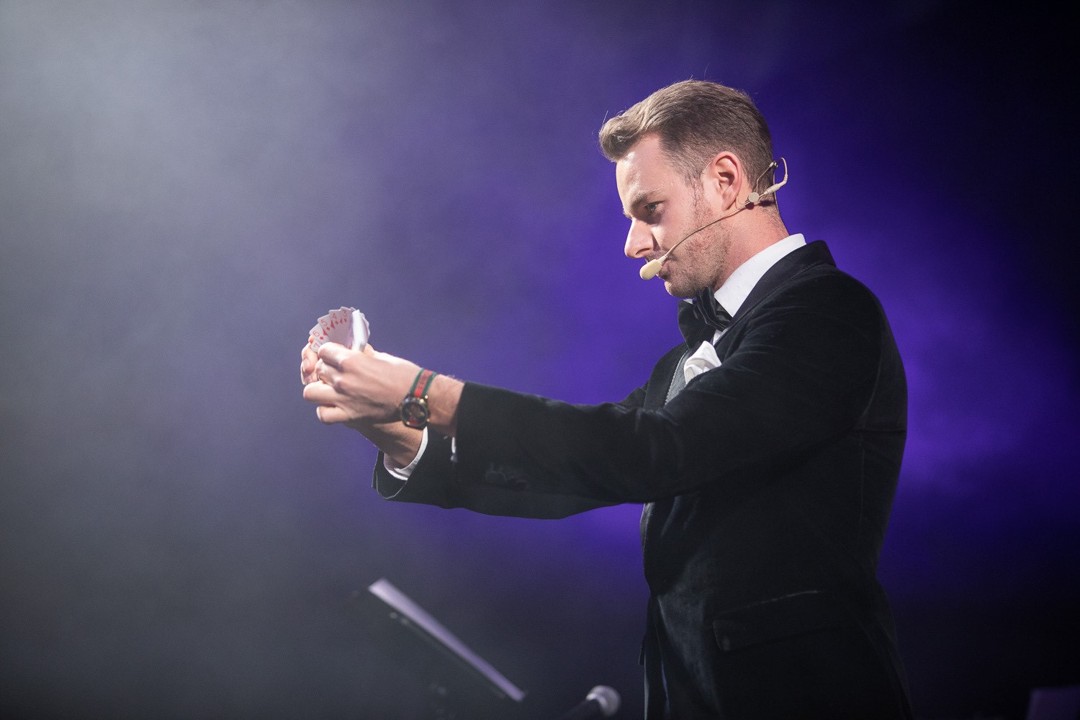 Just Edi Show to charyzmatyczny magik i performer, który łączy nowoczesną iluzję z humorem i bezpośrednim kontaktem